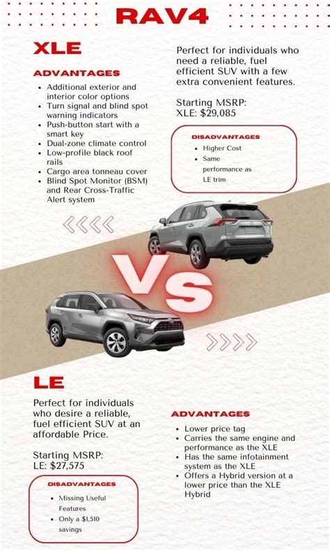 The driving experience can also be different between the LE and XLE trims. The XLE trim is designed to offer a more premium driving experience, with features such as a smoother ride and more comfortable seats. The LE trim, on the other hand, is designed to be more affordable and may not offer as many luxury features.